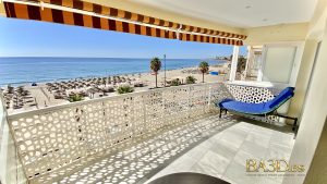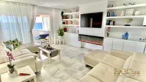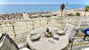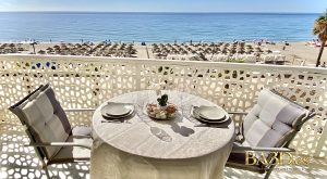 Discover this elegant 2-bedroom, 2-bathroom apartment in one of Fuengirola’s most prestigious beachfront complexes. Perched on the 3rd floor, the expansive terrace offers breathtaking, direct views of the Mediterranean Sea, perfect for morning coffees or sunset cocktails.