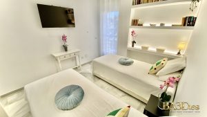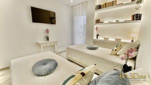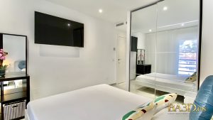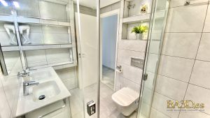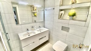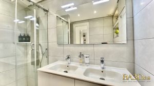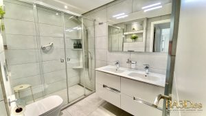 Both bedrooms are designed for comfort and privacy, featuring high-quality beds and generous built-in storage. Each bedroom has its own private, fully equipped bathroom, creating a refined and convenient layout ideal for couples or guests.